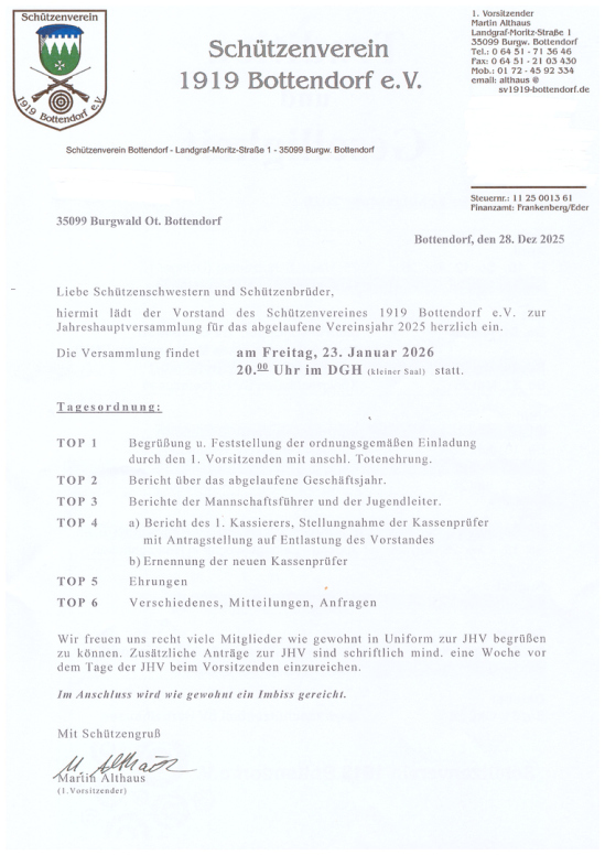 Am 08. Juni 2025 fand das traditionelle Königssschießen des Schützenverein Bottendorf statt.